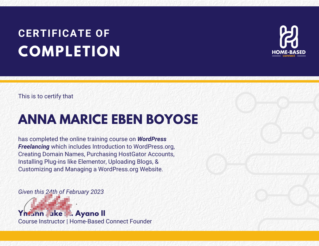 Completed with 100% grade. Learned how to create and customize a website using WordPress,